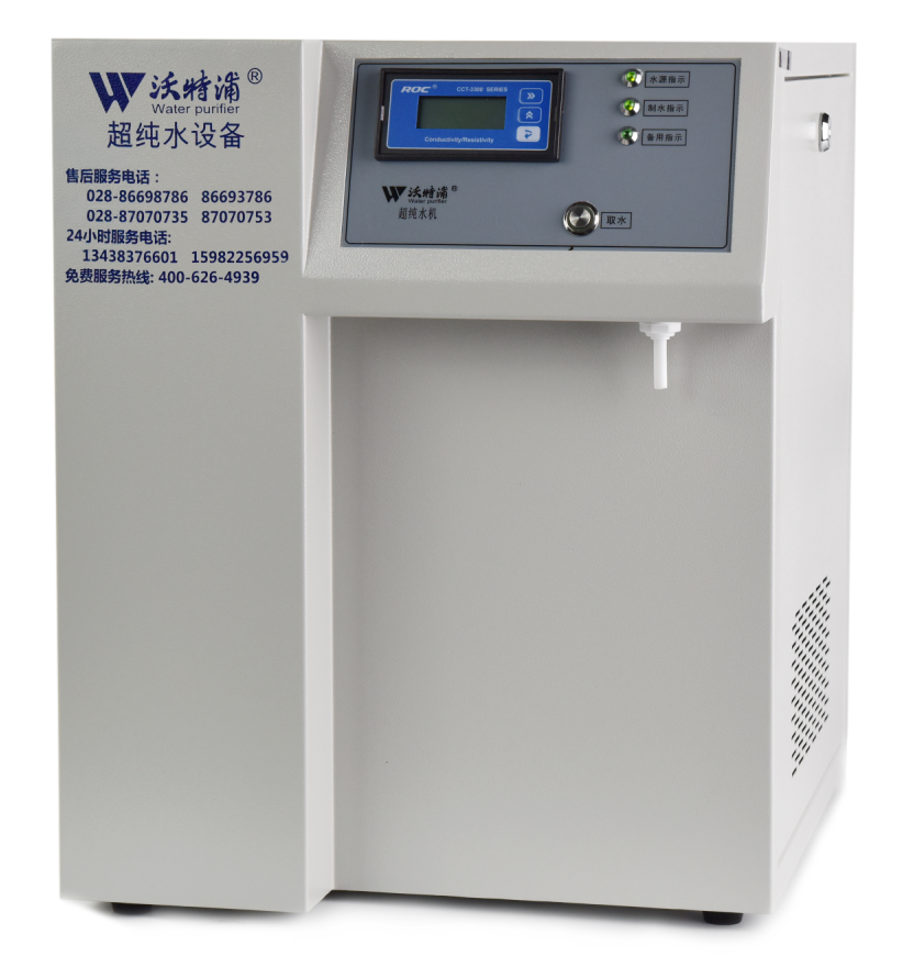 采用雙波長(zhǎng)紫外消解系統(tǒng),除熱源超濾膜組件,采用進(jìn)口離子交換樹脂過濾,使超純水能滿足各種實(shí)驗(yàn)要求。